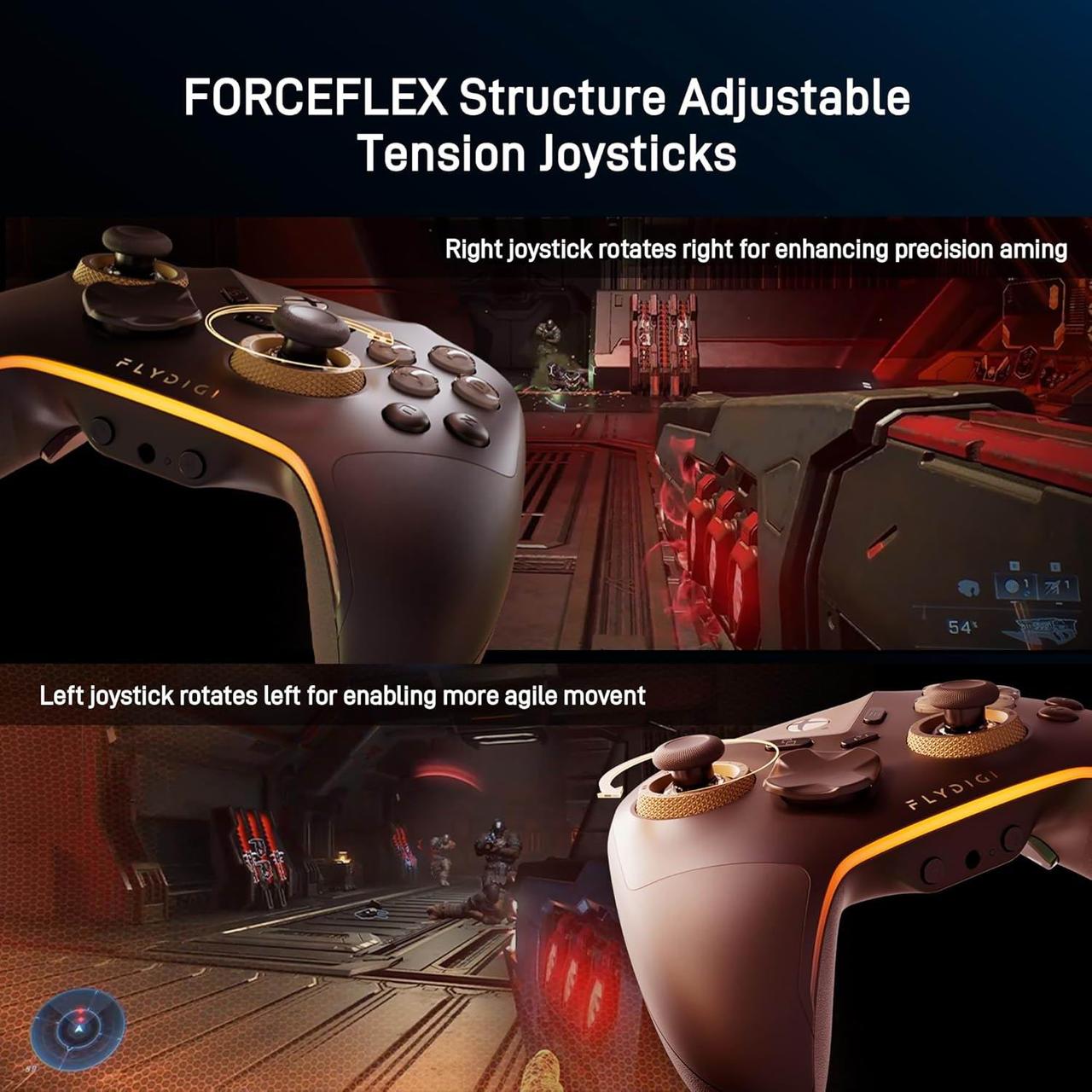 Унікальна фізична структура джойстика FLYDIGI пропонує діапазон регулювання від 40 г/м² до 100 г/м², швидке регулювання натягу джойстика в іграх, якщо вам потрібно, щоб задовольнити різні ігрові потреби, наприклад, під час гри в гоночні ігри або FPS-ігри.