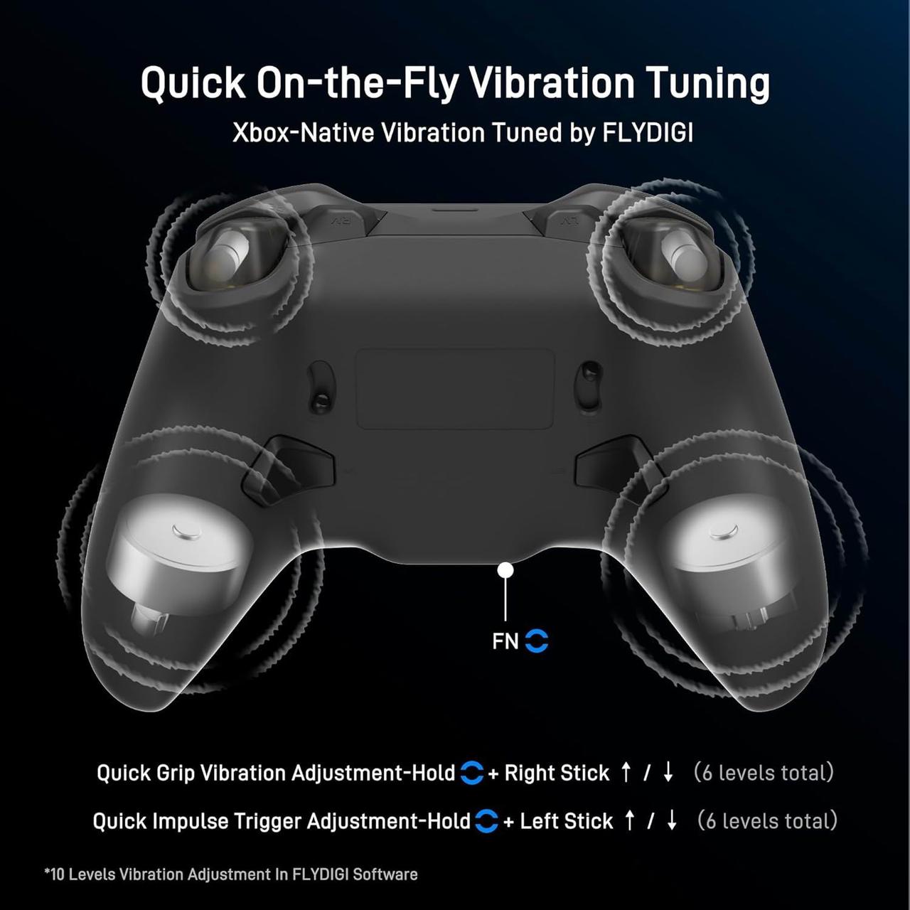 Вбудована вібрація Xbox, налаштована FLYDIGI, забезпечує реалістичну вібрацію як через ручки, так і через тригери, забезпечуючи більш захоплююче та триваліше ігрове відчуття з контролером flydigi для Xbox.