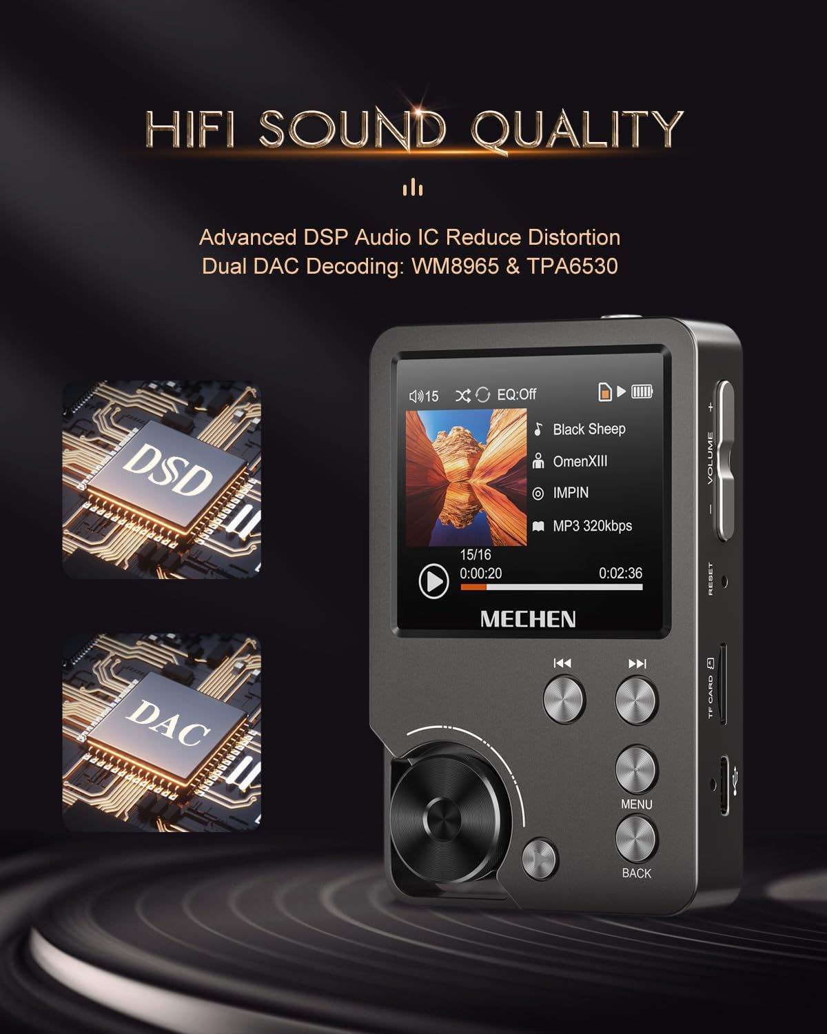 Музичний плеєр DAP без втрат використовує професійне аудіо DSP LC + імпортоване подвійне декодування ЦАП, яке може ефективно відтворити реальну сцену. Чіп жорсткого декодування ЦАП використовує новий WM8965 та потужний чіп TPA6530 від компанії Ti. Підтримувані аудіоформати: MP3 (8-48 кГц, 8-320 кбіт/с), WMA (8-48 кГц, 5-384 кбіт/с, STD 8-96 кГц), WAV (8-192 кГц), APE (8-96 кГц, високий; 8-192 кГц, швидкий), FLAC (8-192 кГц, LO-L10), AAC (8-48 кГц, 8-320 кбіт/с, LC), OGG (8-48 кГц), DSD 128 (5,6 МГц)