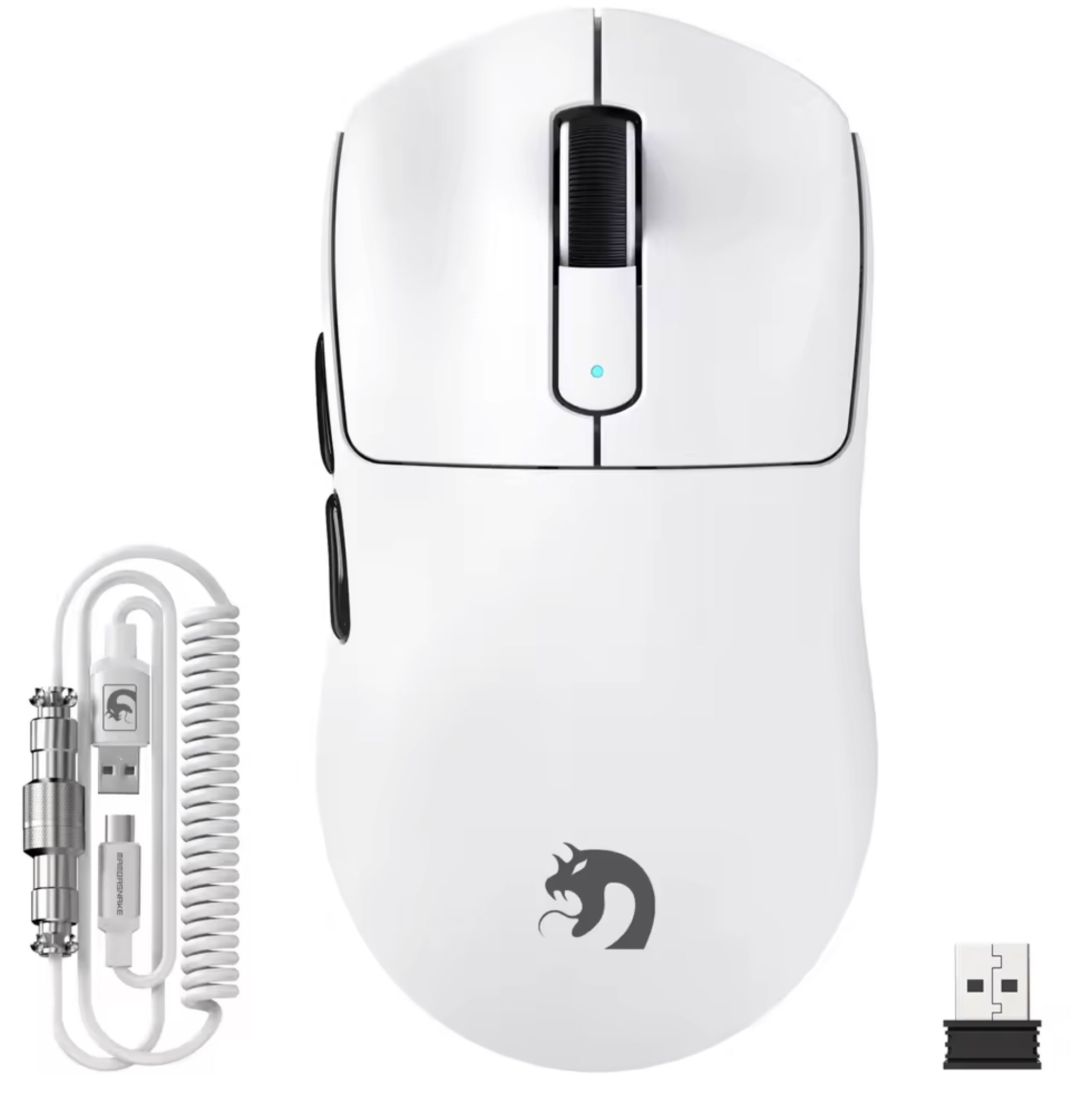 Ігрова Миша MAMBASNAKE M3 Спіральний кабель, PAW3395PRO, 40 000 DPI, мікроперемикач Omron Біла