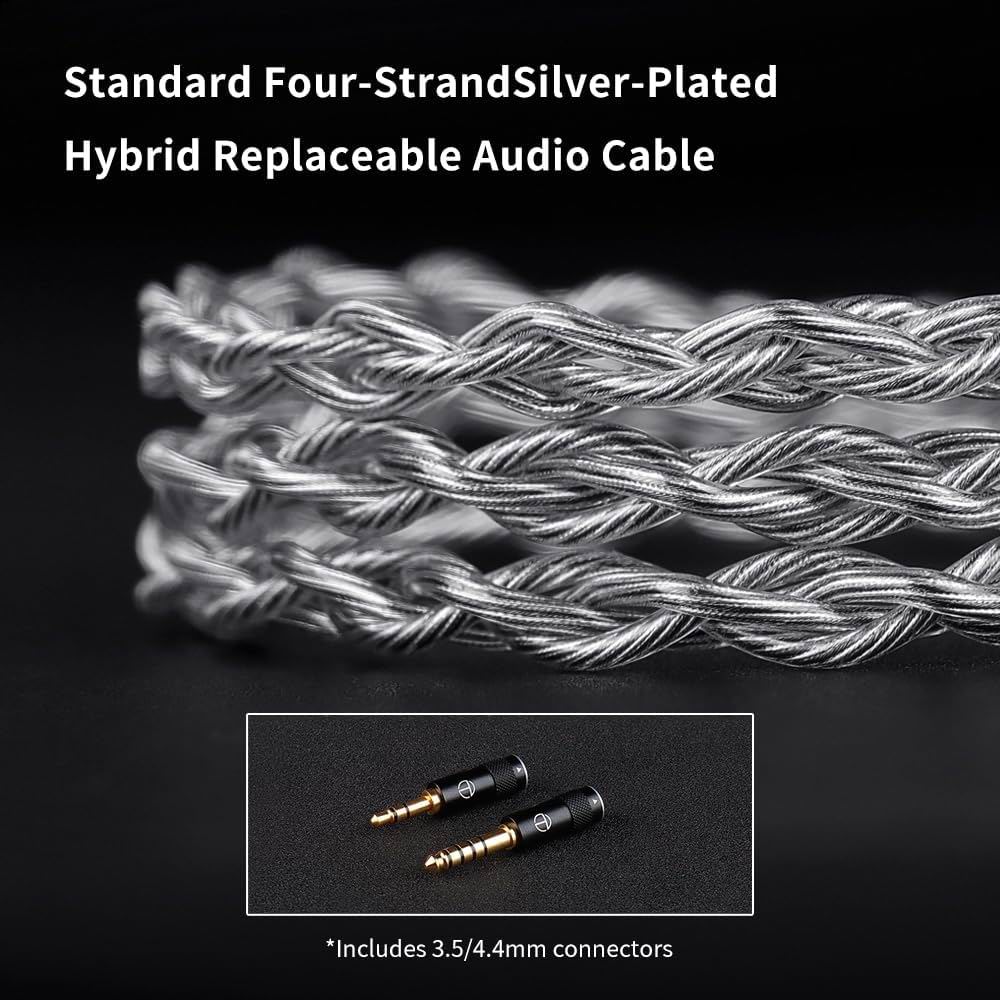 - Преміальний кабель: Чотирьохжильний посріблений кабель з безкисневої міді та срібла покращує передачу високих частот, знижуючи спотворення та забезпечуючи багате звучання.