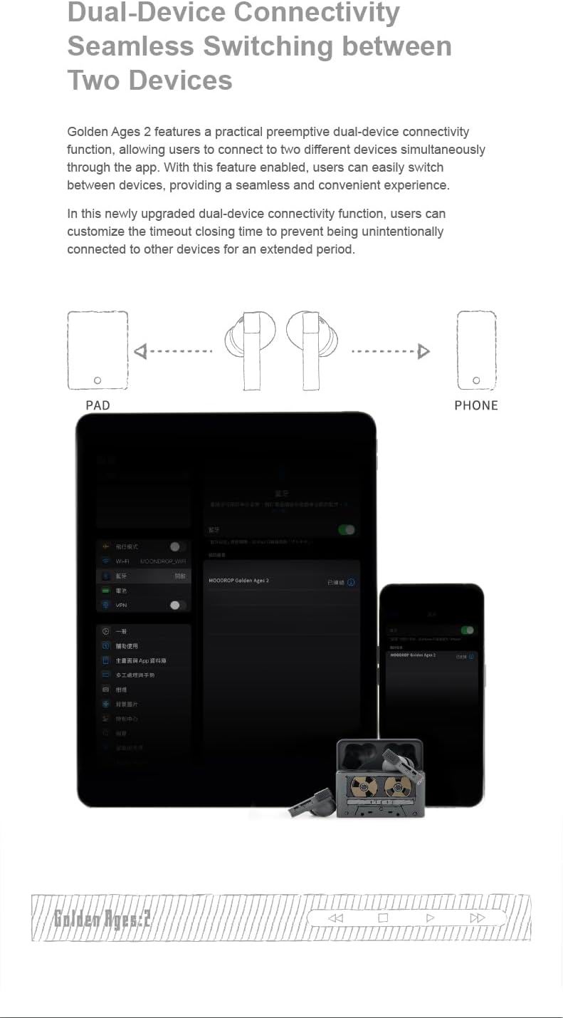 Додаток MOONDROP Link дозволяє користувачам налаштовувати сенсорні керування та перемикати для таких функцій, як ANC (активне шумозаглушення), режим прозорості та вимкнення, що забезпечує більш персоналізований досвід.