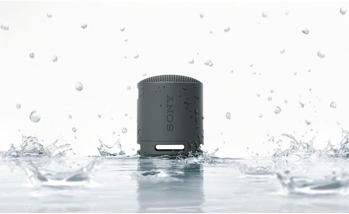 SRS-XB100 має захист від води та пилу за стандартом IP67, що робить її ідеальним супутником у подорожах. Дощ, бризки, пісок чи пил — нічого з цього не завадить насолоджуватись музикою. А завдяки легкій вазі — лише 274 г — та зручному ремінцю, колонка легко поміщається в рюкзак чи навіть у кишеню куртки.