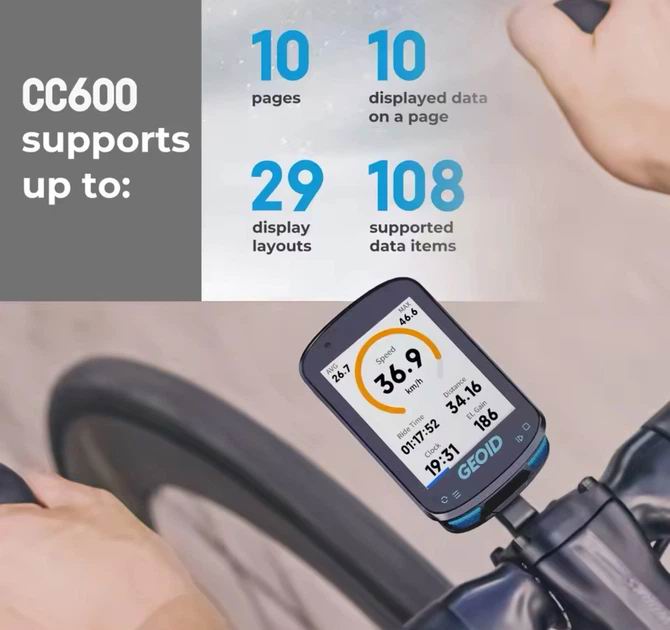 GEOID CC600 — це ідеальний вибір для велосипедистів, які шукають надійний та функціональний пристрій для покращення своїх результатів. Завдяки яскравому екрану, розширеній навігації та підтримці різних датчиків, цей велокомп’ютер стане вашим незамінним помічником як під час тренувань, так і на змаганнях.