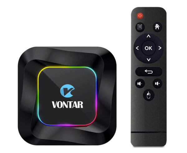 VONTAR R3 — ТБ-приставка на операційній системі Android 13 працює під керуванням чотириядерного процесора RK3528 і п’ятиядерного графічного супроцесора Mali-450, обладнана дводіапазонним модулем Wi-Fi та підтримує під’єднання до інтернету через кабель на швидкості до 100 Мбіт/с.