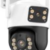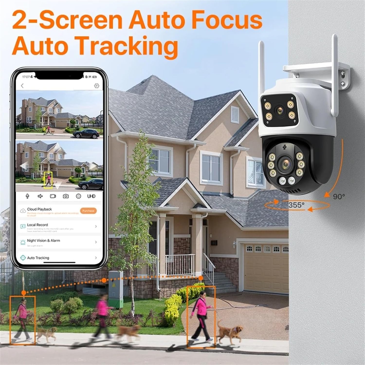 Вулична Бездротова WiFi IP-камера PTZ Онлайн відео спостереження встановлюється й налаштовується за 2-5 хвилин і замінює дві-три звичайні стаціонарні камери спостереження. Кріпимо на стіні або на стелі, на смартфон гойдаємо застосунок. Кілька хвилин на настроювання і Ви отримуєте зображення з камери на свій смартфон. Головна відмінність цієї камери від інших — вона паралельно веде трансляцію з двох камер, причому одна з них стаціонарна, а друга поворотна.