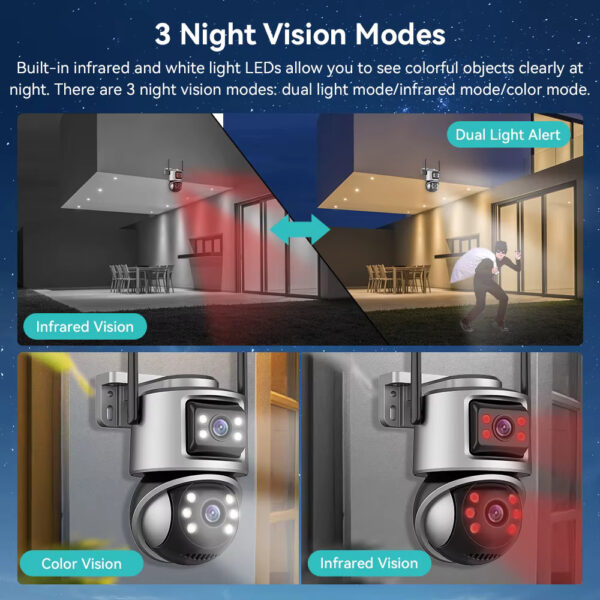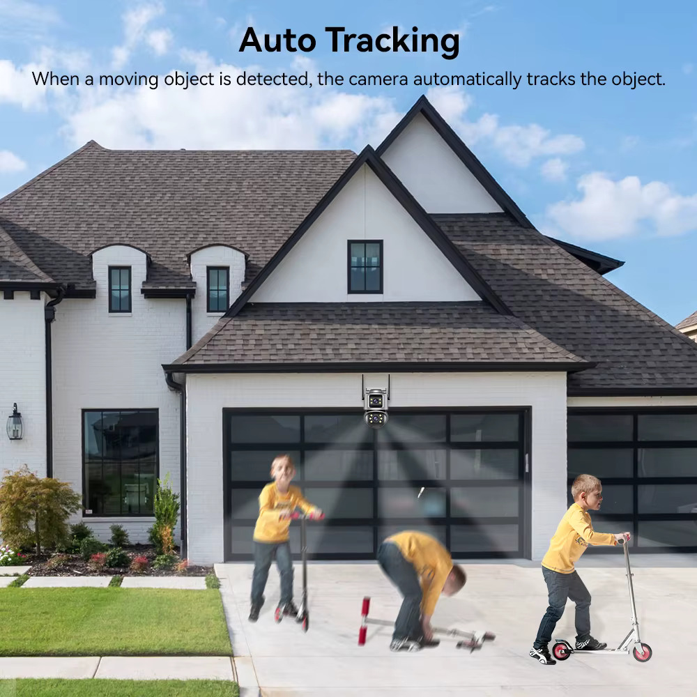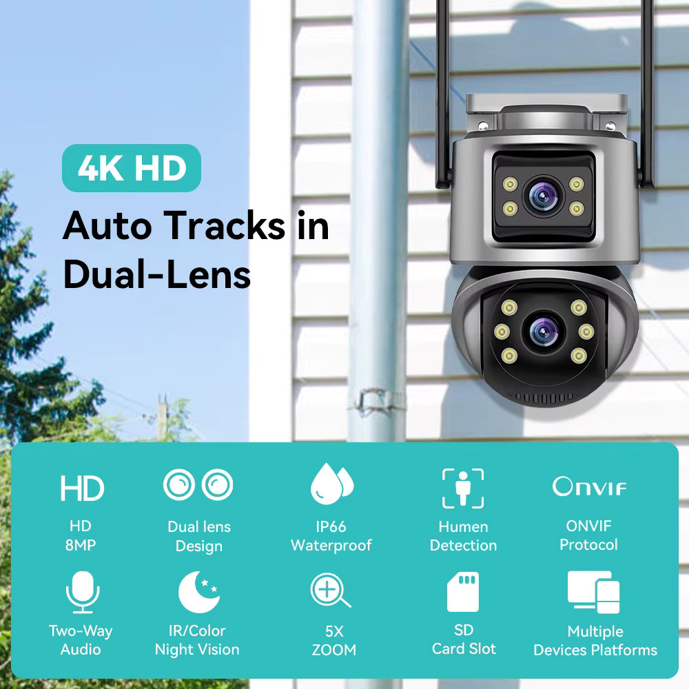 Камера для зовнішнього використання 3MP подвійний об’єктив подвійний екран AI автоматичне відстеження IP камера CCTV аудіо відеоспостереження P2P iCSee