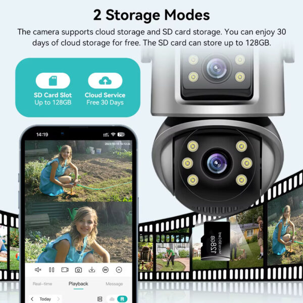 Вбудований слот для карт TF, підтримка до 128 ГБ (за бажанням), дозволяє записувати відео на карту Micro TF/SD або хмарне сховище.